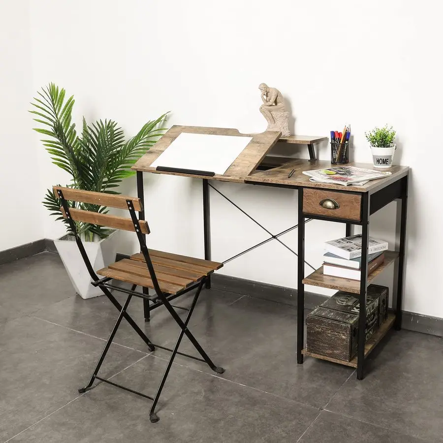 This adjustable drafting computer desk is thoughtfully designed for users who need flexibility, comfort, and functionality in one workstation. Featuring a tiltable desktop that adjusts from flat to a 45-degree angle, this desk supports better posture while working, studying, or drawing. It is especially suitable for artists, designers, students, and professionals who spend long hours at their desks.