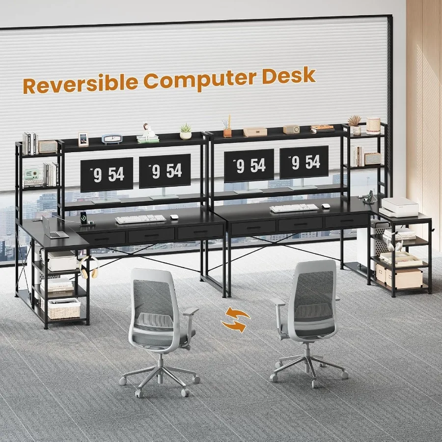 Upgrade your home office, study room, or gaming corner with this 55-inch L-shaped computer desk. Designed for ergonomic comfort and efficiency, it features a spacious tabletop that accommodates multiple monitors, laptops, and accessories. The built-in hutch includes adjustable shelves and drawers, offering versatile storage for books, gaming gear, or office supplies, keeping your workspace clutter-free.