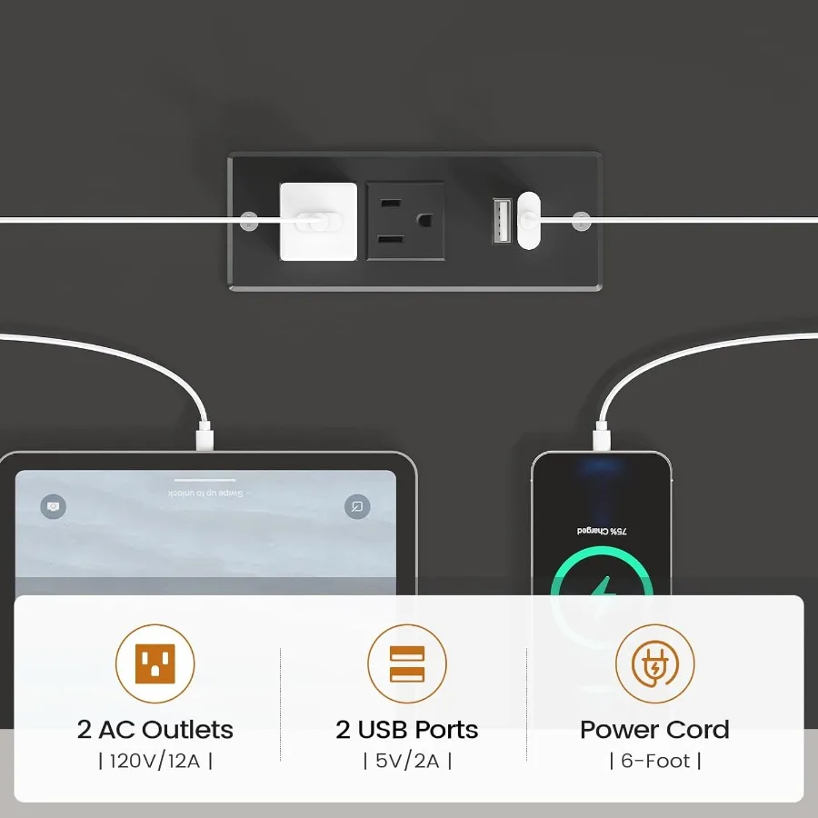 - Integrated cable management keeps cords neat and accessible.
