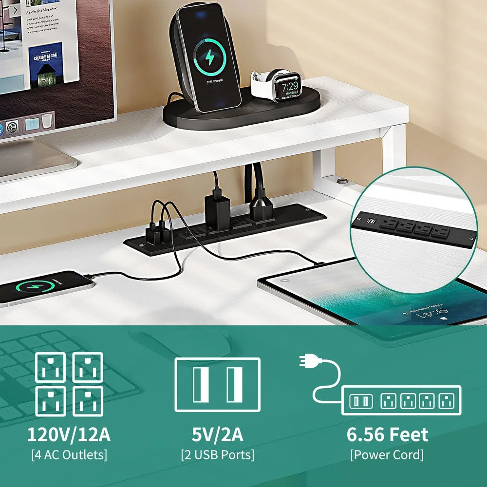- Integrated power outlets and USB ports for easy charging and cable management.